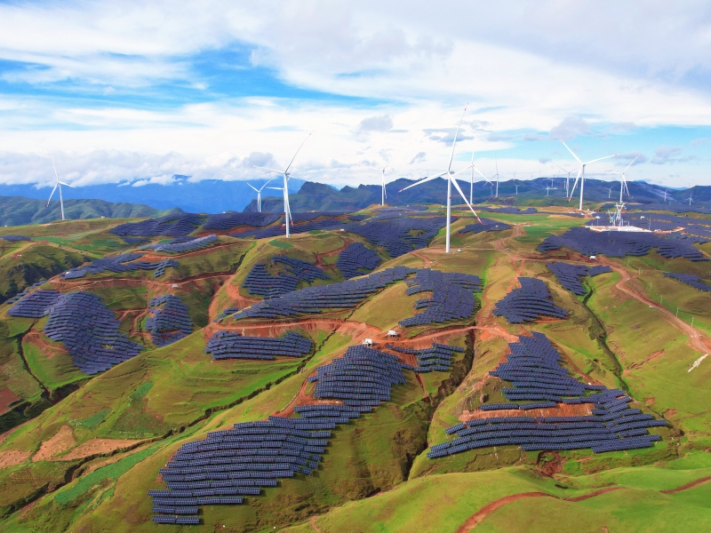 項目位于云南省昭通市永善縣,橫跨伍寨、蓮峰、茂林三個鄉鎮,地處烏蒙山北段高寒高原山區、氣候復雜多變,給項目建設帶來諸多挑戰。項目部合理配置資源,推行網格化管理,將光伏場區科學劃分為70個子陣,采取多個作業面同步施工;在每個作業點配齊氧氣瓶與急救藥箱,常態化開展高原反應應急演練;連續數月的雨季,參建員工冒雨清淤鋪路,搶修道路,在危險路段緊急修筑擋墻、埋設涵管,利用雨歇間隙期“見縫插針”組織施工;針對起伏落差大的地形,團隊靈活調整樁基“身高”,組件安裝順應山勢鋪設,最大化利用山地空間;濕地或沼澤區域的子陣,則開挖排水溝、增設擋土墻,加深樁基1-2米,確保樁基穩固;利用50臺無人機在陡峭區域運輸材料設備,有效解決運輸難題,工程建設一路快速推進。